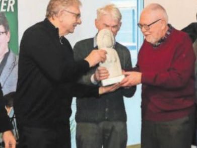 Büdnis90/Die Grünen zeichnen seit vielen Jahren Personen und Organisationen die sich im soziaen Bereich engagieren. Und dieses Jahr ging die Auszeichnung an uns, die Flüchtlingsbetreuung Herzogenaurach. Vielen Dank für diese Anerkennung unserer täglichen Arbeit! Unser Bild zeigt die Übergabe der Plastik an Rudi Weber, Wolfgang Seitz und Konrad Eitel
